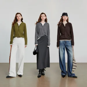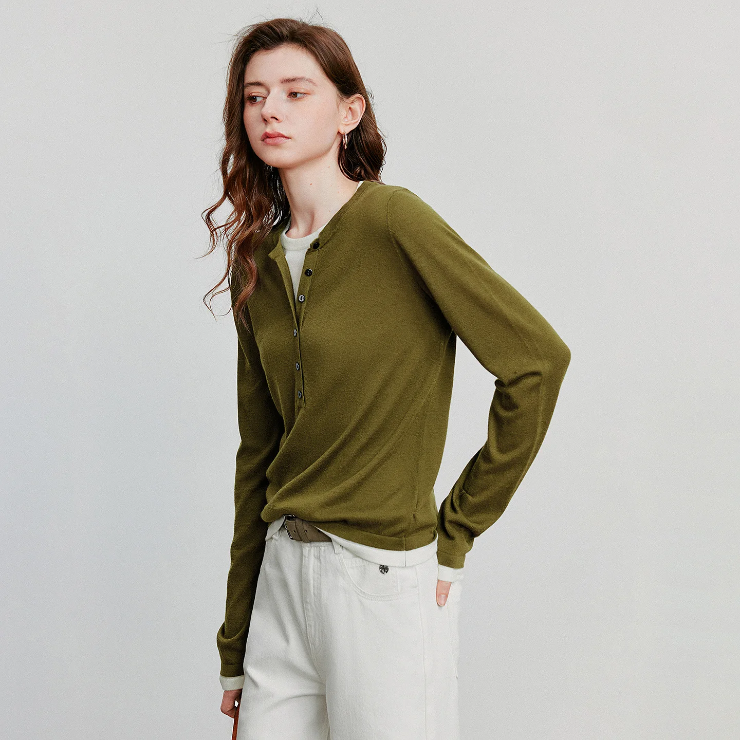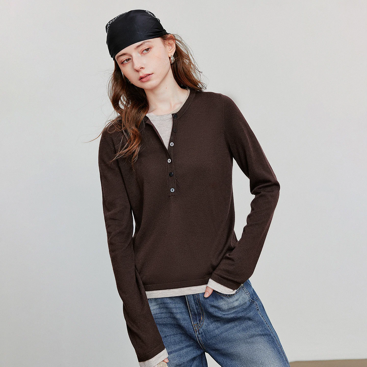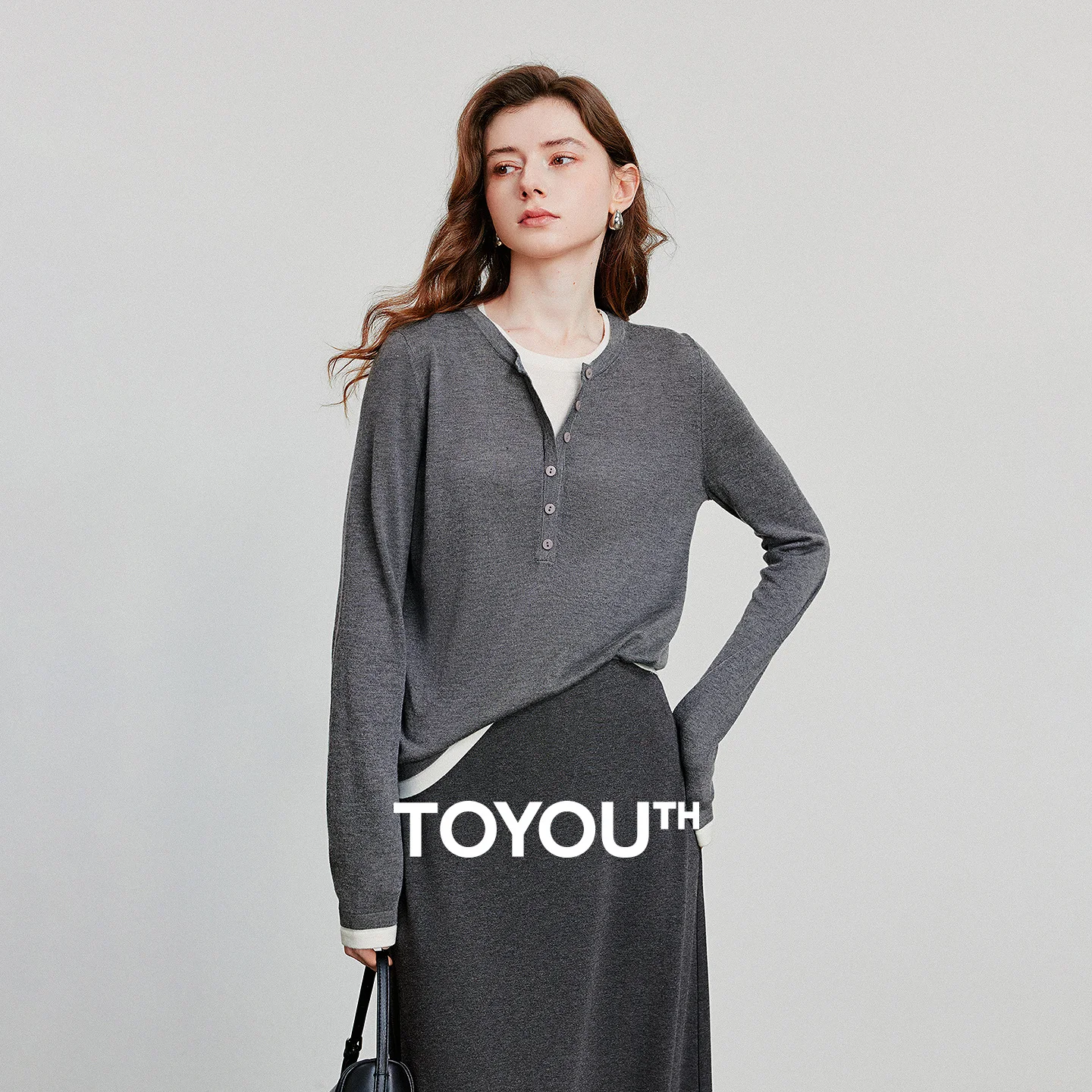 TOYOUTH Women Knitted Shirt 2025 Autumn New Retro Color Contrast Splicing Fake Two Piece Pullover Bottom Tops